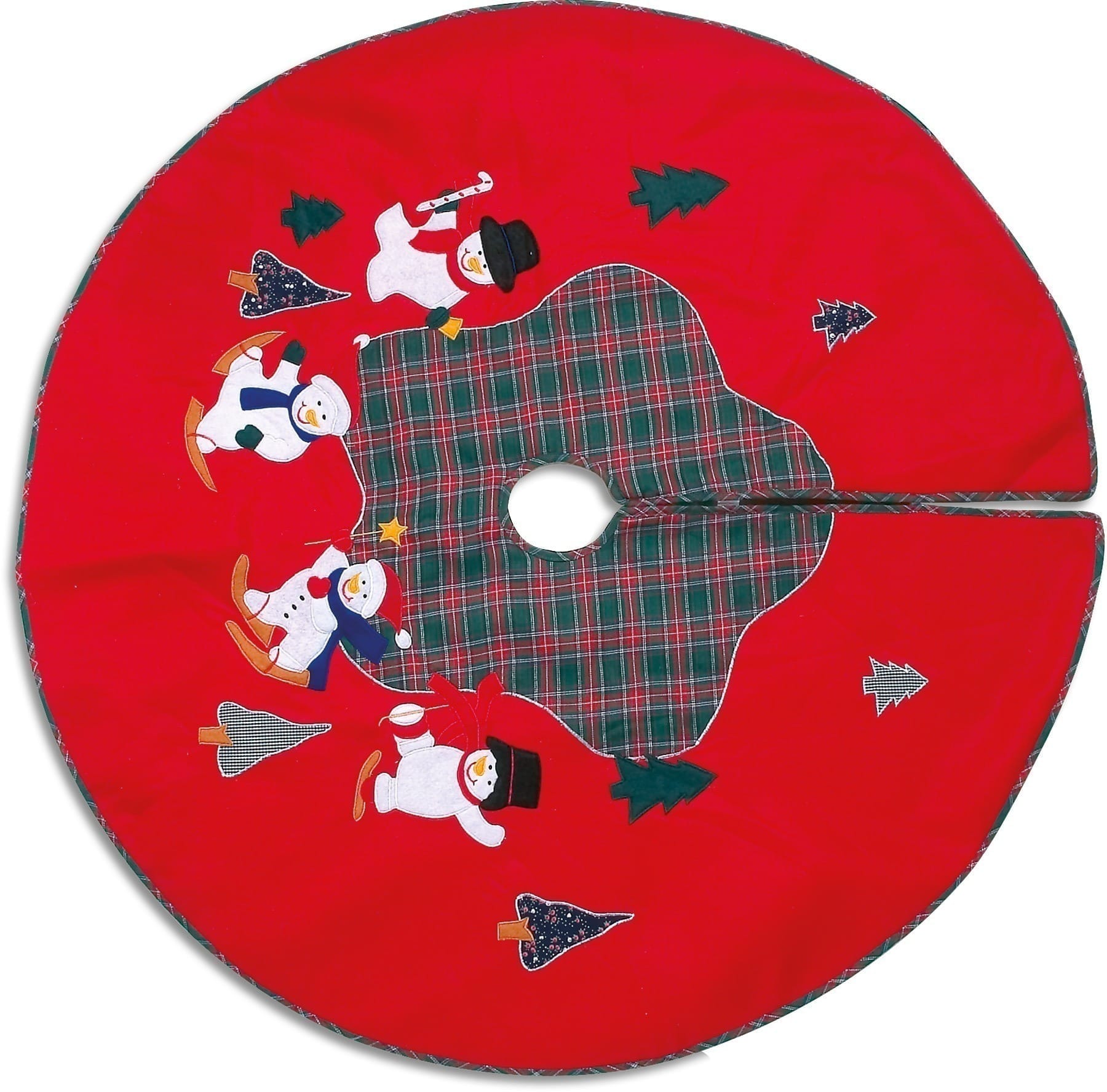 Cette nappe soigneusement cousue cache le support sapin et offre beaucoup d‘espace pour les cadeaux de Noël.