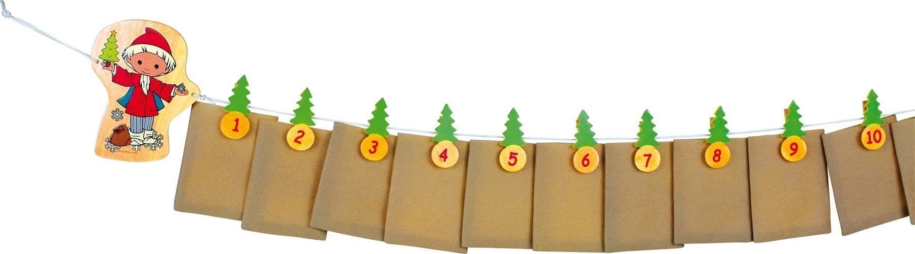 Cette fois, le marchand de sable porte 24 petits sachets qui pourront être remplis de jolies surprises de l´Avent ! Les sachets se ferment avec des petites pinces numérotées.
